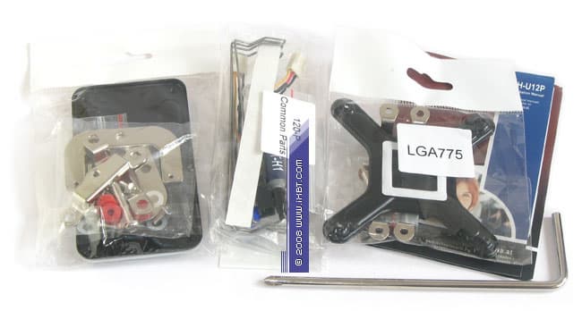 Как мы не раз подмечали в наших разборках с авангардными системами охлаждения, «ахиллесовой пятой» практически любого хай-эндового кулера современности является трудоемкий крепеж. Увы, исключением в этом ряду не становится и сегодняшний подопытный NH-U12P. Так, чтобы инсталлировать его на платформе Intel LGA775, потребуется в обязательном порядке демонтировать материнскую плату из корпуса, далее зафиксировать винтами две крепежные скобки, приложив к обратной стороне сокета комплектную крестовину-супинатор, потом прикрутить специализированные монтажные планки к подошве радиатора, и только теперь можно будет непосредственно устанавливать кулер на подобающее ему место, заворачивая два подпружиненных винта в крепежные скобки. Примерно такую же последовательность операций придется провести и на платформе AMD Socket AM2, где дело еще больше усугубляется обязательным демонтажем стандартной крепежной рамы и необходимостью применения мудреных фиксирующих планок в случае ориентации сокета «Юг-Север». Как ни крути, инсталляцию NH-U12P вряд ли можно засчитать дружелюбным процессом — для опытных энтузиастов все это, конечно, не составит особого труда, но для начинающих пользователей усложненные манипуляции могут стать почти непреодолимым препятствием (не зря Noctua в руководстве по инсталляции чуть ли не через каждый абзац дает ссылку на мейл техподдержки).