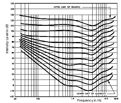 Рис. 1. Контуры одинаковой громкости