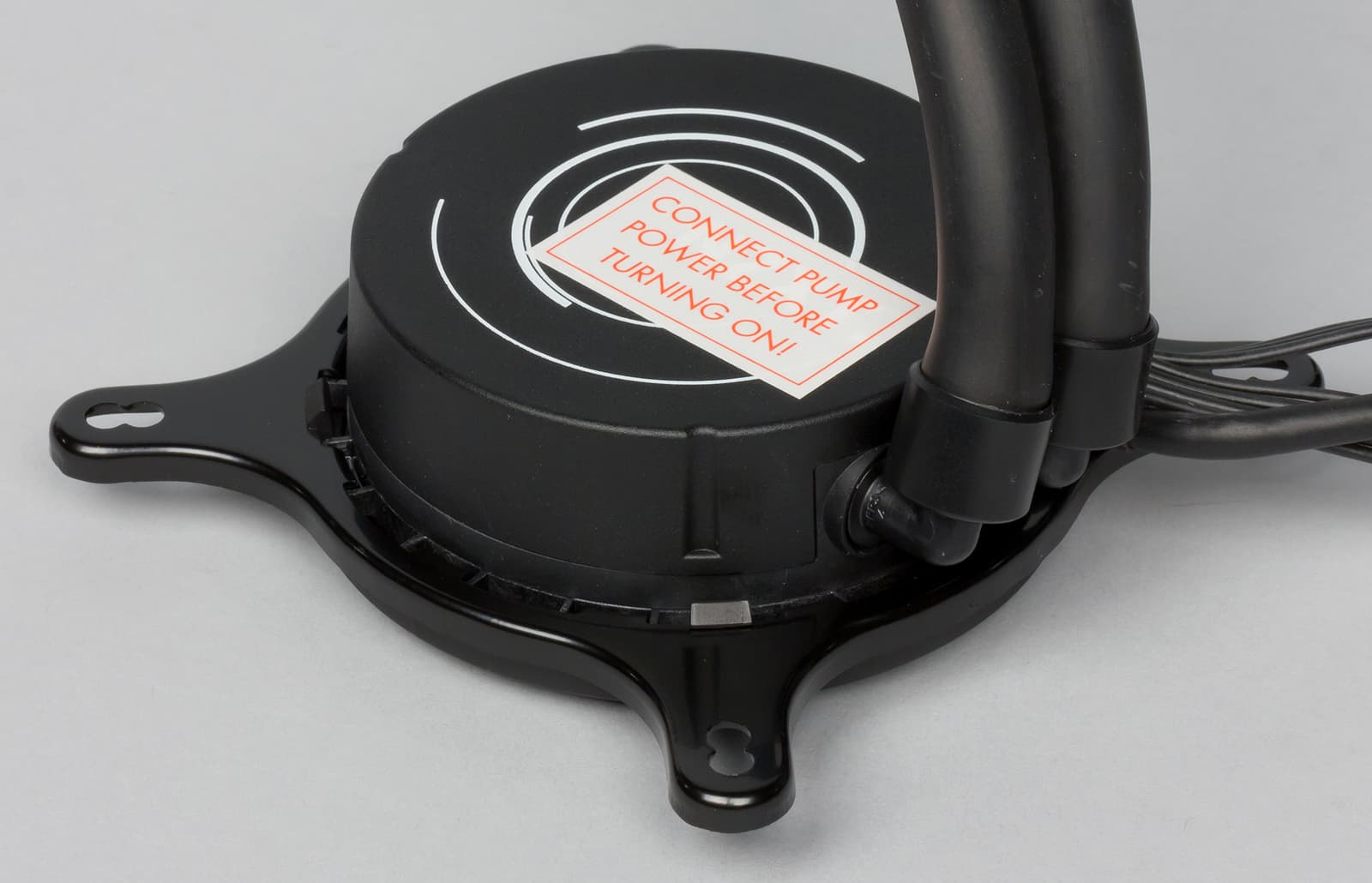 Рамка для крепления помпы и вентилятора сделана из окрашенного глянцевой краской металла. Для покупателей доступны модификации с черным, белым и красным цветом. Кроме того, в кронштейне предусмотрены точки крепления шлангов СВО с помощью стяжек.