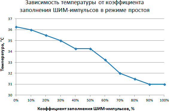 Этап 2. Определение зависимости температуры процессора в режиме простоя от коэффициента заполнения ШИМ-импульсов
