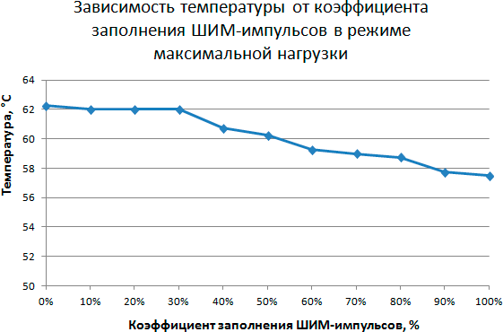 Этап 3. Определение зависимости температуры процессора при его полной загрузке от коэффициента заполнения ШИМ-импульсов