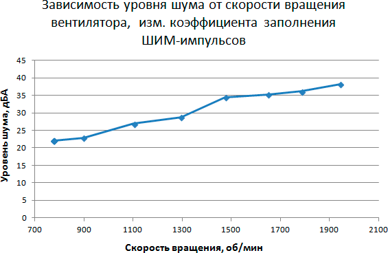 Этап 4. Определение уровня шума в зависимости от скорости вращения вентилятора кулера при управлении с помощью ШИМ-импульсов