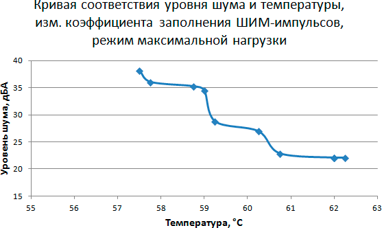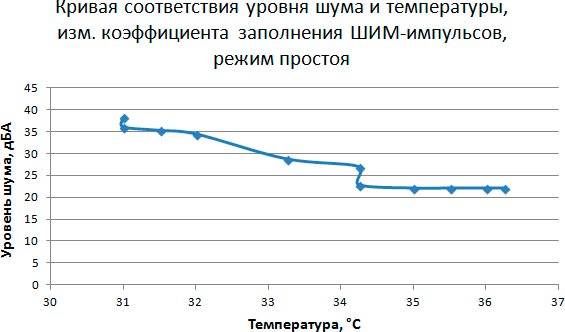Этап 5. Построение кривой соответствия уровня шума и температуры в зависимости от скорости вращения вентилятора кулера при управлении с помощью ШИМ-импульсов