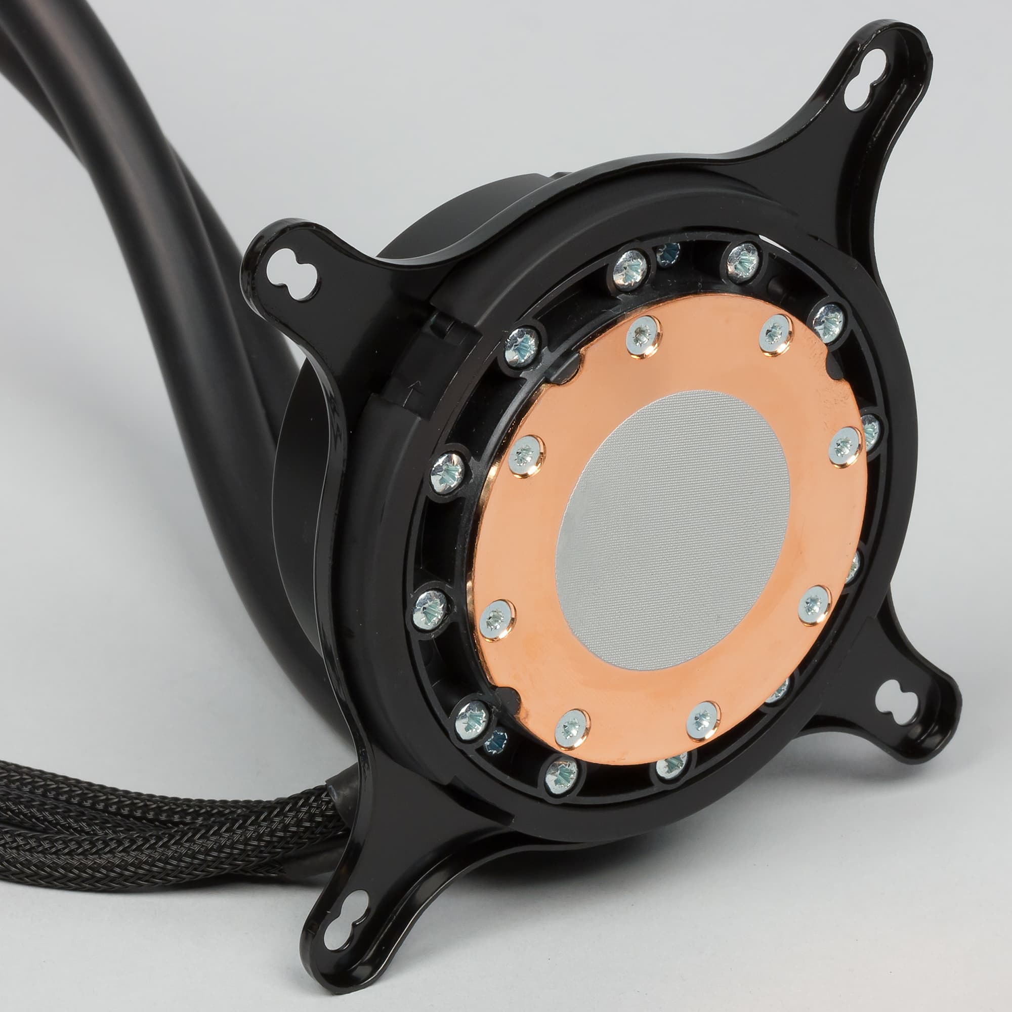| Подключение | Помпа: 3-кон. разъем (питание и датчик вращения) на мат. плату и кабель управления на внутренний USB-разъем на мат. плате, вентилятор: 4-кон. разъем (питание, датчик вращения, управление ШИМ) в разъем от помпы |