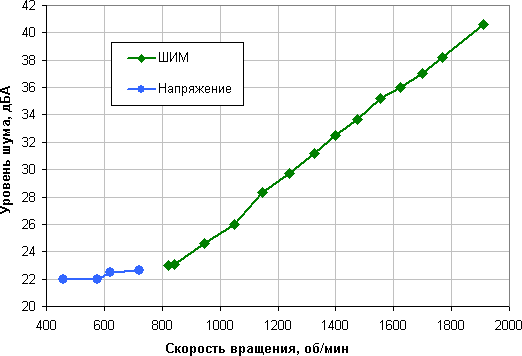 Регулировка с помощью напряжения позволяет расширить диапазон вниз до 460 об/мин. При 2,6 В вентилятор останавливается, при 2,9 В запускается.