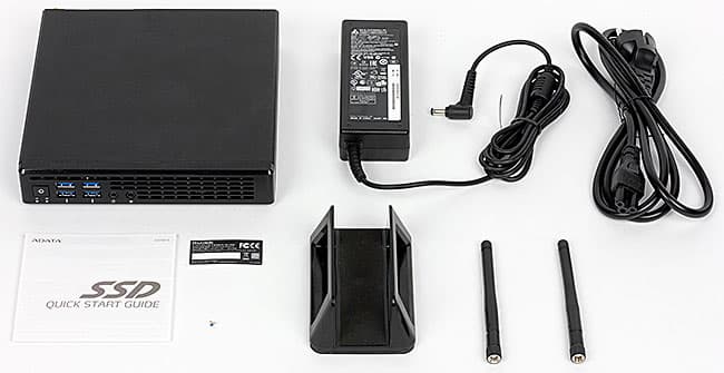 Система хранения данных современная: на плате есть слот M.2 с поддержкой интерфейсов PCIe x4 и SATA (M-key) и карт длиной до 80 мм, а в самом компьютере — еще и 2,5-дюймовый отсек для SATA-винчестеров или SSD. Таким образом, установить можно два накопителя, причем один — максимально быстрый, а второй — емкий и недорогой. С другой стороны, понятно, что многие пользователи предпочтут ограничиться одним (тем более, если сбудутся обещания производителей добиться через год ценового паритета между SSD и винчестерами в ноутбучном форм-факторе), и именно в таком виде Pegatron отправил нам на тестирование эту систему — с одним «ноутбучным» SSD AData.