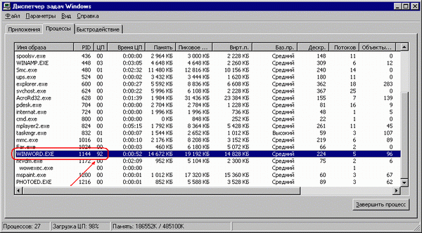 Попутно заметим, что неправильно спроектированное приложение способно пожирать чудовищное количество процессорного времени даже при полном ничегонеделании. Этим, в частности, грешат ранние версии словаря Context и переводчика Socrat, вызывающие 100-процентную загрузку центрального процессора и, как следствие, сильное торможение системы. Все версии Microsoft Word (вплоть до XP включительно) также имеют один очень неприятный дефект проектирования, при определенных обстоятельствах приводящий к 92—95-процентной загрузке ЦП. Причем увеличение тактовой частоты процессора не исправляет ситуацию и практически не увеличивает общую производительность системы! Единственно правильным решением будет полный отказ от «неправильных» приложений или переход на их альтернативные версии.