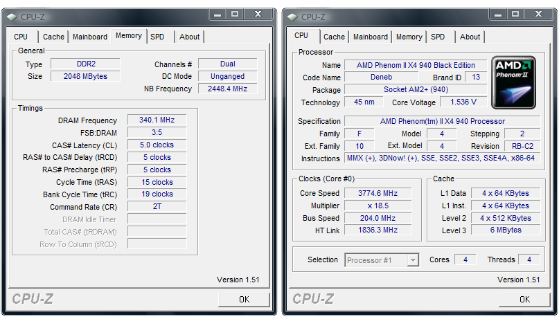 | AMD Phenom II X4 940 Black Edition , 3775 МГц, CPU NB 2448 МГц | |