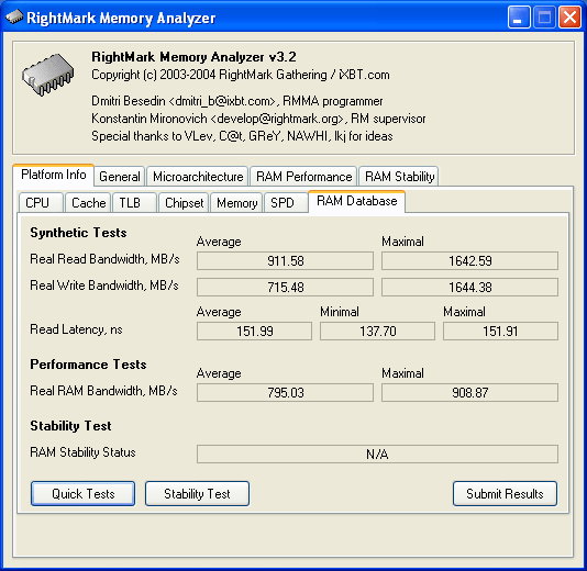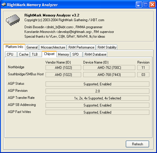 Очередной релиз универсального тестового пакета RightMark Memory Analyzer для низкоуровневого тестирования платформ содержит в себе, в первую очередь, реализацию ряда новых возможностей информационного характера. В новой версии теста заметное развитие получило направление, намеченное еще начиная с версии 3.0, которое заключается в предоставлении максимально подробной и точной справочной информации о платформе. Так, для начала было реализовано извлечение информации о наиболее важном компоненте платформы — центральном процессоре, путем расшифровки значений, выдаваемых инструкцией CPUID. Вполне логично, что следующим этапом развития информационной составляющей тестового пакета следует ожидать «добывание» данных о двух остальных компонентах платформы — чипсета и памяти. Что, собственно, и состоялось — итак, встречайте!