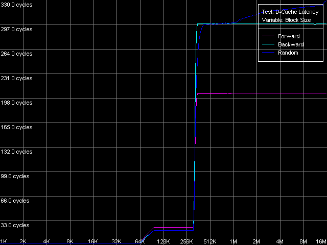 | Минимальная латентность (прямой/обратный/случайный доступ), AMD K7 | Минимальная латентность (прямой/обратный/случайный доступ), AMD K8 | |