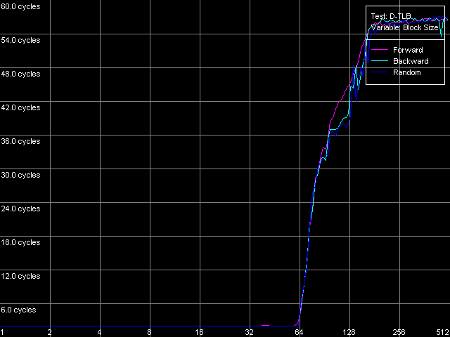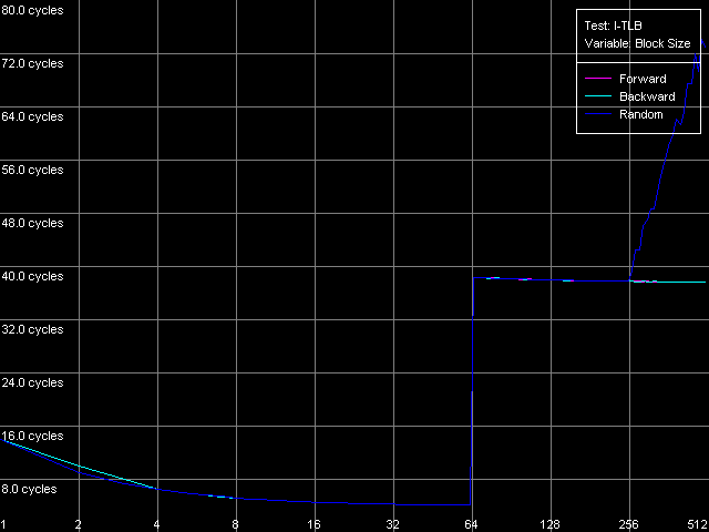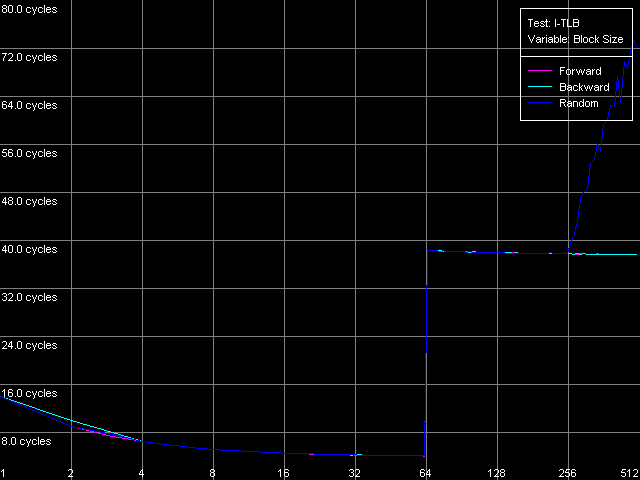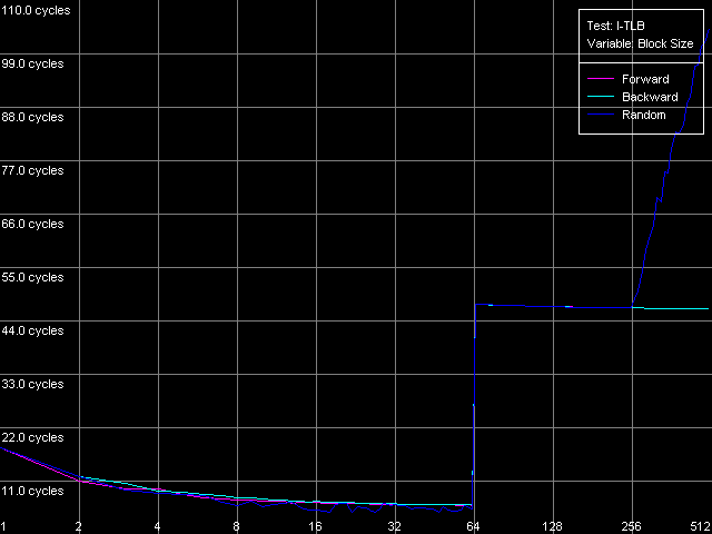 Результат нашего последнего теста показывает, что I-TLB, как и D-TLB в рассматриваемых процессорах, является полностью ассоциативным. В заключение отметим, что со структурной точки зрения ни D-TLB, ни I-TLB не претерпели каких-либо изменений при переходе к новой микроархитектуре NetBurst, реализованной в 90-нм процессорах Pentium 4 Prescott.