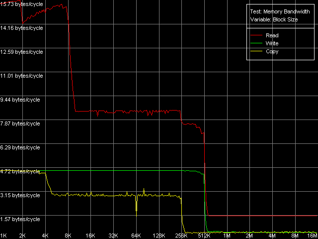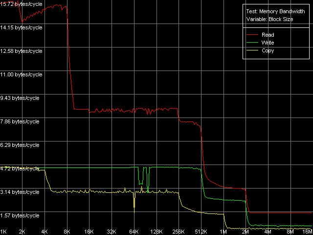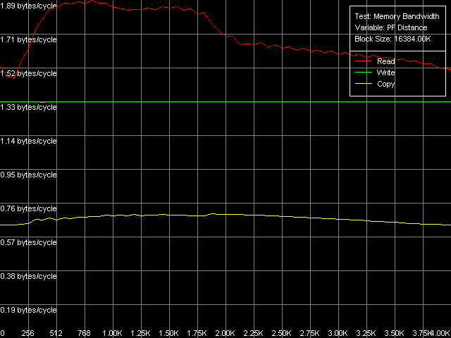 Во всех случаях, где это возможно, будем использовать как MMX-, так и SSE/SSE2-регистры. Напомним, что методы Prefetch/Non-Temporal store реализованы в тесте Memory Bandwidth, а методы чтения/записи строк кэша — в тесте D-Cache Bandwidth.