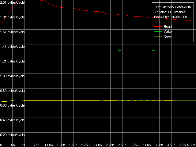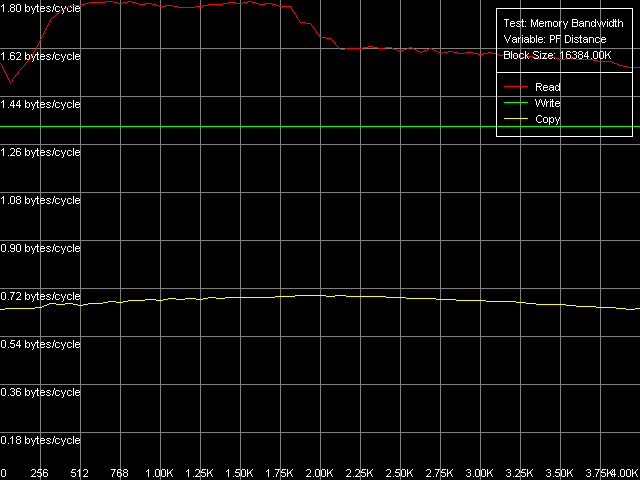 Можно сказать, что Software Prefetch в новом поколении процессоров Prescott претерпел значительные улучшения, позволяющие достичь, фактически, 100% эффективности двухканальной памяти DDR на чтение. Что приятно, соответствующие моменты отражены и в документации Prescott. Так, отмечается, что в новой ревизии микроархитектуры NetBurst инструкции Software Prefetch могут инициировать не только загрузку данных с новой страницы памяти (чего не было в предыдущих реализациях Pentium 4), но и загрузку соответствующего дескриптора страницы в D-TLB. Вторым значимым улучшением является кэширование инструкций Software Prefetch Trace-кэшем процессора, позволяющее значительно снизить затраты на их исполнение.