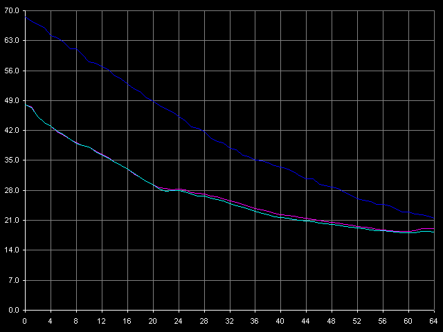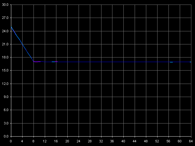 Напоследок измерим характеристики TLB подопытных процессоров VIA C3. И сразу скажем, что здесь нас ждет еще один сюрприз — на этот раз только от Ezra. Для ответа на вопрос, какой именно, просто взглянем на картинки, полученные в тесте D-TLB, пресет D-TLB Size.
