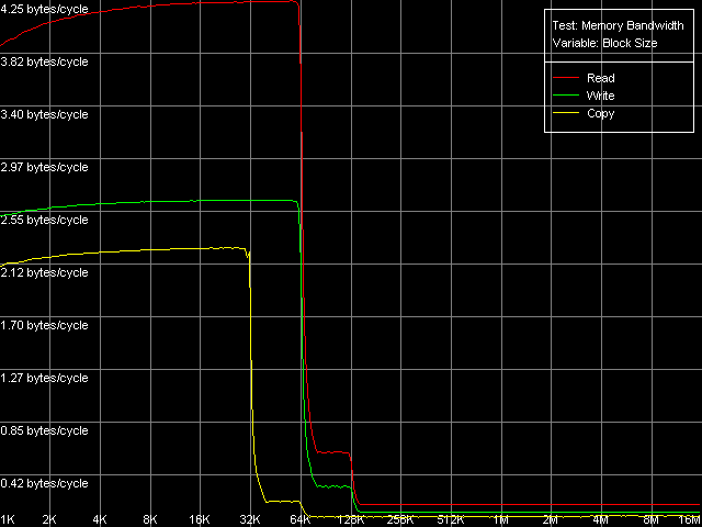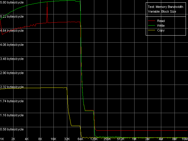 | L1, чтение, MMX L1, чтение, SSE L1, запись, MMX L1, запись, SSE | 4.25 - 2.64 - | 4.89 7.98 5.80 7.08 |