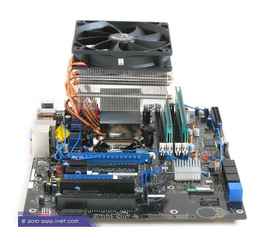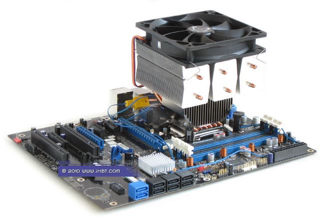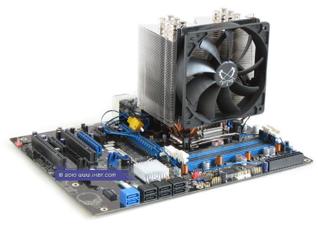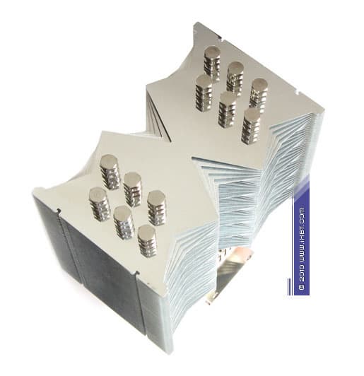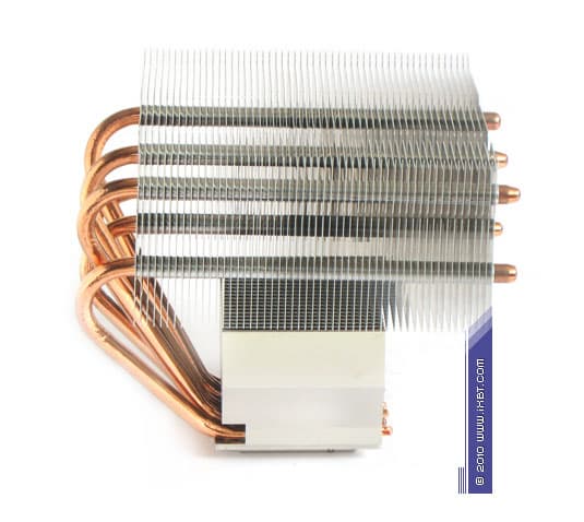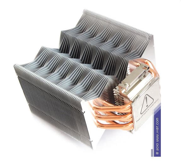 Конструктивные особенности (радиатор). «Рабочее тело» кулера образовано комбинацией медного теплосъемника 50x47x2 мм, вспомогательного алюминиевого радиатора 42х78х28 мм, шести медных тепловых трубок диаметра 6 мм и секции алюминиевого оребрения (54 пластины усложненной формы, общая площадь поверхности теплообмена порядка 9000 см2).