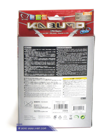 Поставка включает радиатор, вентилятор (серии Kaze Maru), набор мультплатформенного крепежа (поддерживаются системы Intel Socket 478/LGA775/LGA1156/LGA1366 и AMD Socket 754/939/AM2/AM3), крепежные клипсы для вентилятора, пакетик с термопастой и техническое руководство (присутствует русскоязычная инструкция).