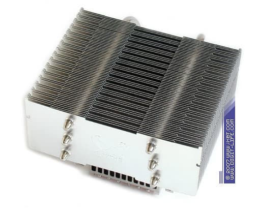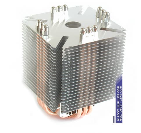 Новый кулер с не меньшей аккуратностью перенимает и все технические изыски, изначально присущие серии Ninja. В первую очередь, это занимательная конфигурация оребрения, основным целеполаганием которой является минимизация гидравлического сопротивления радиатора и повышение коэффициентов теплоотдачи — пластины с четырьмя диагональными и одним центральным вырезами, укрупненный шаг размещения пластин (4 мм).