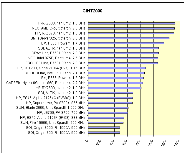 - HP-RX2600 Cluster, Itanium 2, 1.0 GHz