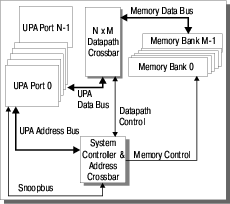 Принципиальной особенностью, которая отличает архитектуру UPA от ее конкурентов от HP, IBM и, например, SGI — это независимая коммутация адресов и данных. Такая особенность позволяет строить системы с произвольной шириной шин адресов и данных для каждого канала. Ниже подробно будут рассмотрены варианты построения систем на коммутаторе UPA.