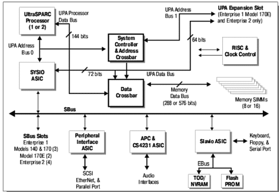 Рассмотрим подробнее архитектуру одной из младших моделей серверов SUN Enterprise: