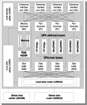 «UPA — это высокопроизводительная многопортовая масштабируемая архитектура, построенная на принципе одновременной пакетной коммутации нескольких портов и предназначенная для реализации широкого спектра вычислительных систем (от однопроцессорных рабочих станций до многопроцессорных серверов)»