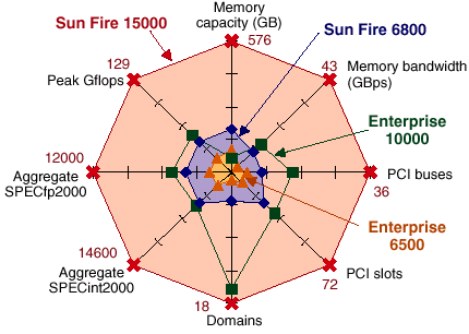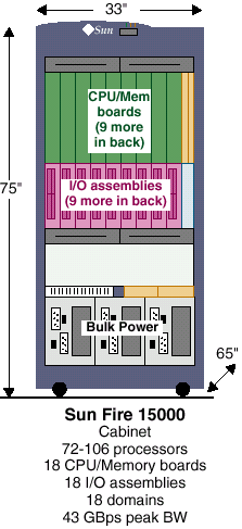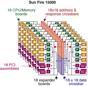 Пока статья готовилась к печати компания SUN выпустила новый сервер — SUN Fire 12000. Строго говоря, это ровно половинка от SUN Fire 15000 — так что у компании SUN есть некоторые проблемы с математикой… :-) Впрочем, маркетингЪ — дело хитрое…