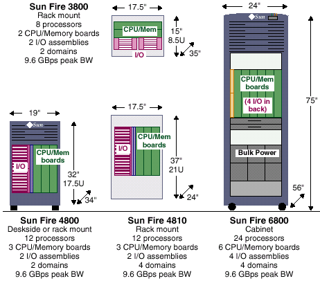 Новый сервер должен занять место между SUN Fire 6800 и Fire 15000, соответственно, примерно посередине находятся и его технические характеристики.