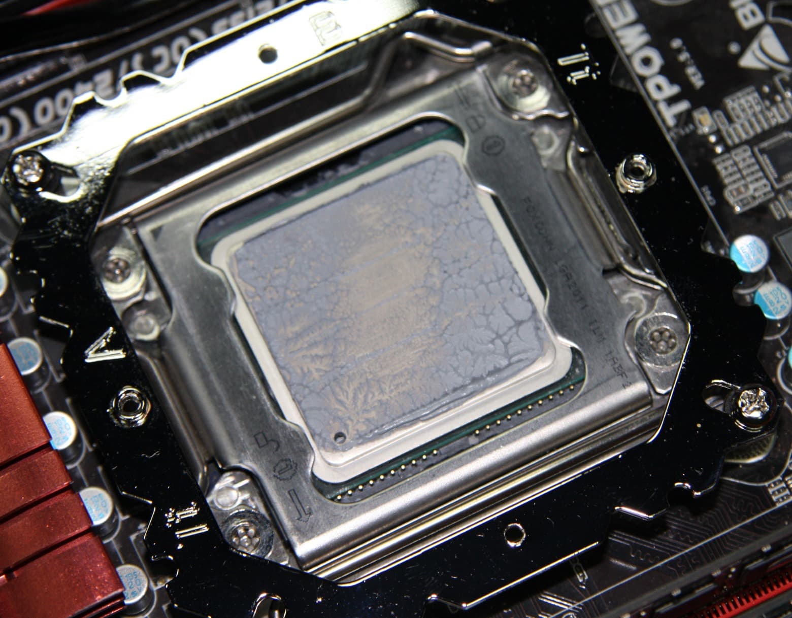 Видно, что термопаста распределилась почти до краев плоскости крышки процессора, и в центре слой термопасты имел минимальную толщину.