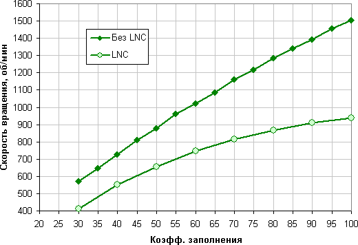 Отличный результат — плавный рост скорости вращения при изменении коэффициента заполнения от 30% до 100%.