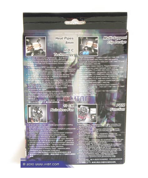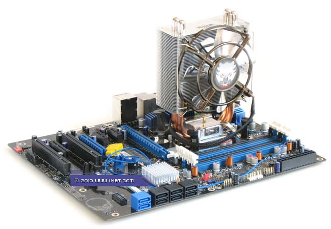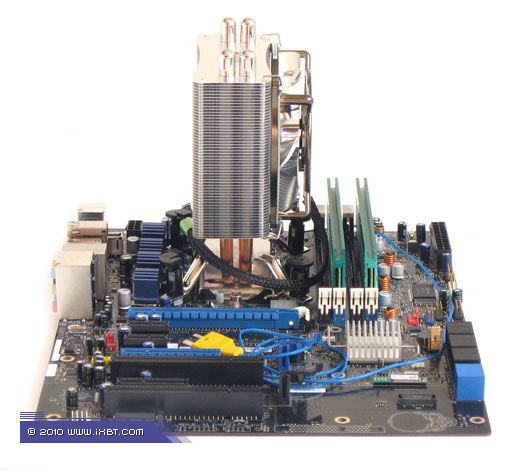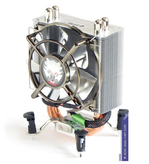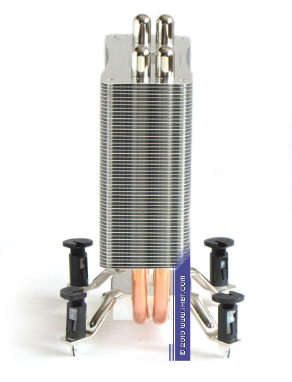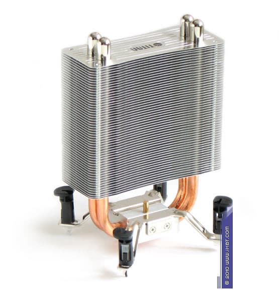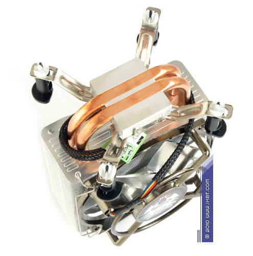 Конструктивные особенности (радиатор). «Рабочее тело» кулера базируется на технологии «прямого контакта» и имеет в своем составе две медные тепловые трубки диаметра 8 мм, алюминиевый механический держатель 35×40×14 мм и секцию алюминиевого оребрения (55 пластин, общая площадь поверхности теплообмена порядка 5000 см²).