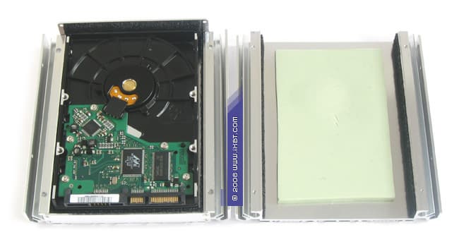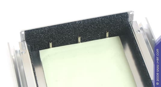 Вполне стандартным предстает и «интерьер» TTC-HD90: отмечаем наличие шумопоглощающих прокладок из вспененного полиэтилена, размещенных по внутреннему периметру модулей, а также двух теплопроводных прокладок 130х85 мм, призванных контактировать с корпусом и электроникой жесткого диска.