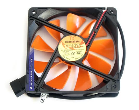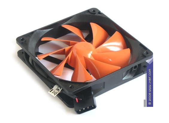 Отрадно, что реализация этой перспективной идеи в рамках BigTyp VP осуществляется на вполне приемлемом технологическом уровне. Так, комплектный вентилятор (модель Hong Sheng A1225L12S, типоразмер 120×120×25 мм, номинальные обороты 1500 об/мин) предлагает интересное аэродинамическое оформление (крыльчатка заточена под слабоимпедансные тракты, с малой величиной статического давления, но уважительным потоком) и нормализованное техническое качество (стандартный подшипник скольжения, слегка упрощенная, но аккуратная электроника). Единственной несуразностью выглядит четырехконтактный Molex-коннектор — с учетом затрудненного варьирования оборотов вентилятора и архаичности подключения, эксплуатационного удобства он явно не добавляет.