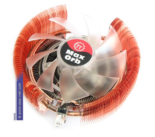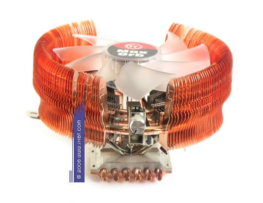 Впрочем, справедливости ради следует отметить, что в отличие от того же BigTyp VP все вопросы относительно технической корректности крепежа автоматически снимаются — он хорошо согласуется с весовым параметром (масса MaxOrb EX составляет около 600 г) и обеспечивает надежную, строго нормативную посадку кулера. Другим оправдательным моментом можно засчитать специфический радиальный конструктив, который не допускает применения крепежных причиндалов, родственных эргономичным инсталляторам BigTyp VP. Однако, как ни крути, нынешнее компромиссное решение по-прежнему оставляет желать лучшего, и спецам Thermaltake здесь еще есть над чем поработать!
