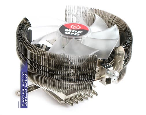 Продолжая тему компактных обзоров, идеологически заряженных на рассмотрение новинок из топового сектора кулеростроительной отрасли, сегодня в наш фокус мы помещаем весьма занимательный кулер с многозначительным маркетинговым наименованием MaxOrb. Компания Thermaltake анонсировала этот продукт практически одновременно с «коллегой по цеху» — V1, который и стал первенцем наших блиц-ревю. Однако оба кулера, как водится, попали на российский рынок с ощутимой задержкой и комфортно разместиться на полках магазинов сумели лишь недавно. Благодаря такому стечению обстоятельств MaxOrb по-прежнему относится к разряду горячих новинок, достойных нашего пристального внимания, а весьма многообещающий технический конструктив, сдобренный разумным, человеколюбивым ценником, прибавляет ему еще большей актуальности.