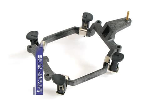 Основная порция наших нареканий касается крепежной системы — очень мудреной она получилась, иначе не скажешь! Так, чтобы установить MaxOrb на платформе Intel LGA775, потребуется сначала подцепить четыре замка-кебрика к специализированной инсталляционной рамке, защелкнув их на соответствующих упорах, далее зафиксировать собранный комплект в сокете, и потом, соблюдая особую аккуратность и заблаговременно вооружившись отверткой, смонтировать кулер с помощью «интегрированной» крепежной скобки. Примерно в том же ключе обстоит дело и на платформах AMD — будь то системы с Socket 754/939, либо Socket AM2, в любом случае, придется заменять стандартную крепежную рамку сокета прилагаемой для последующей установки кулера. То есть, как ни крути, в инсталляционном удобстве наш подопытный сильно уступает своему собрату V1!