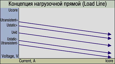 VRM, построенный по принципу нагрузочной прямой, изменяет напряжение питания процессора в зависимости от потребляемого тока.