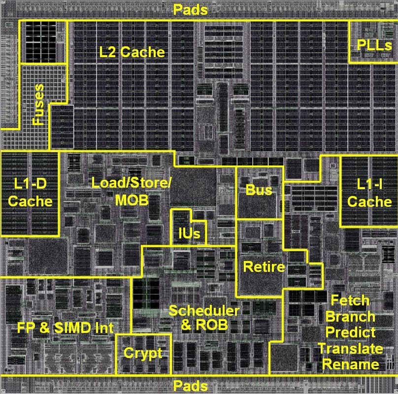 Самое время составить обзорный список того, что изменилось в CNB относительно CNA. Это полезно для определения, чего достигли «бесконечно помудревшие» микроархитектурщики за 1,5 года работы, почти не увеличив площадь ЦП: