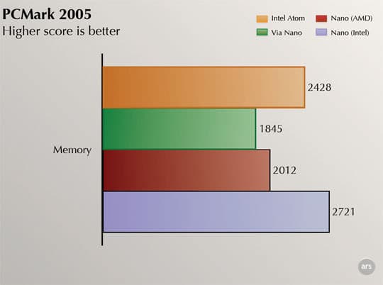Впрочем, уже давно высказывались подозрения, что среди прочих программ пострадали от диспетчерской «закладки» и бенчмарки — а их замеры потом попадают в обзоры на сайтах, по которым потенциальные покупатели решают, что́ им купить. И вот один из доказанных примеров как раз ущемляет права VIA — Futuremark PCMark 2005 (предшественник PCMark Vantage) для теста производительности памяти использует оптимизации, основанные на названии компании-производителя ЦП, с разницей в скорости отдельных ветвей до полутора раз (при прочих равных условиях)!