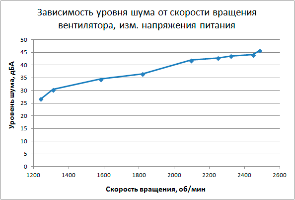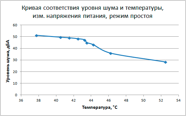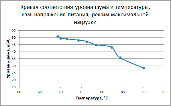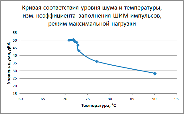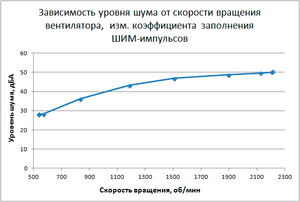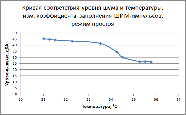 Этап 5. Построение кривой соответствия уровня шума и температуры в зависимости от скорости вращения вентилятора кулера при управлении с помощью ШИМ-импульсов и/или изменением напряжения питания