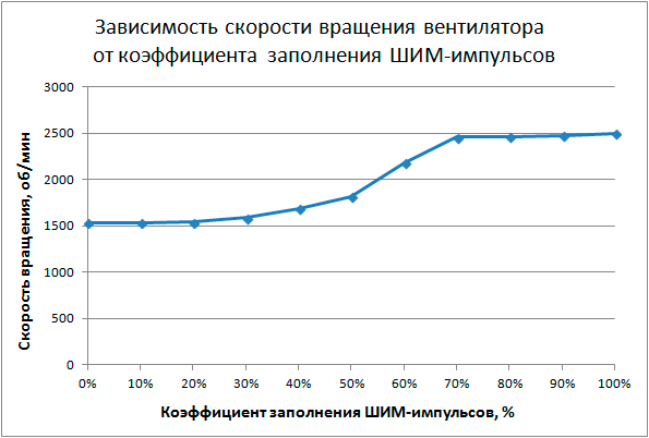 Этап 1. Определение зависимости скорости вращения вентилятора кулера от коэффициента заполнения ШИМ-импульсов и/или напряжения питания
