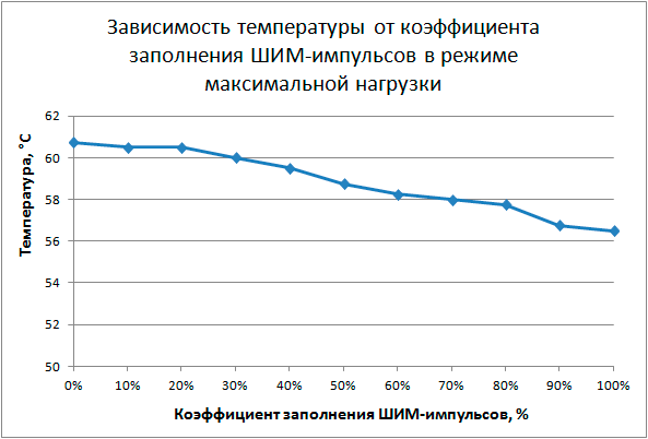 Этап 3. Определение зависимости температуры процессора при его полной загрузке от коэффициента заполнения ШИМ-импульсов и/или напряжения питания