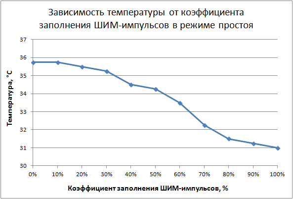 Этап 2. Определение зависимости температуры процессора в режиме простоя от коэффициента заполнения ШИМ-импульсов и/или напряжения питания