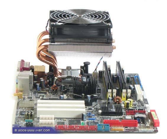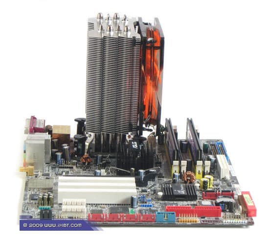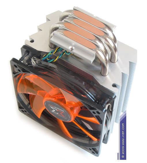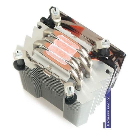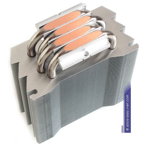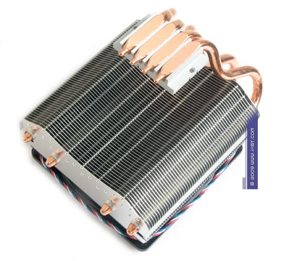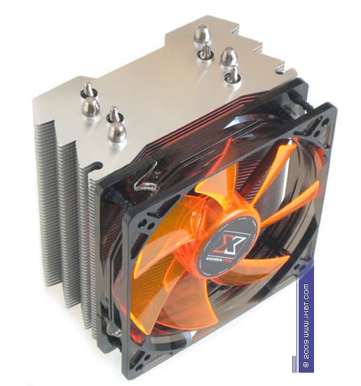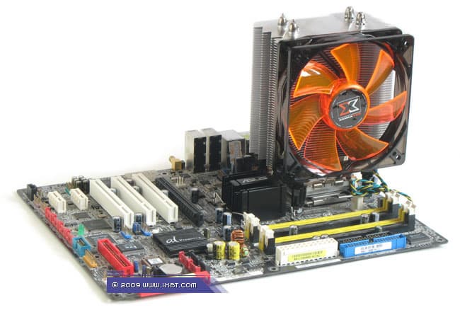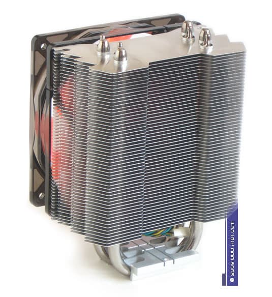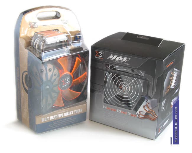 Главнейшей конструктивной изюминкой этих продуктов является продвинутая технология «прямого контакта» — в маркетинговых терминах Xigmatek она именуется как «Heat-pipe Direct Touch» (HDT) и базируется на прямом согласовании теплотранспорта (тепловых трубок) с источником (процессором), без участия каких-либо посредников в лице традиционных теплосъемных пластин. Идеология HDT, надо отметить, выглядит очень разумно, ведь каким бы ни был теплосъемник (при всей своей полезности в деле перераспределения теплового потока от процессора к трубкам), он всегда вносит определенную «добавку» в полное термическое сопротивление кулера, подспудно занижая его охлаждающую способность. И если устранить это «препятствие», то совместно с другими мероприятиями по техническому совершенствованию радиатора (оптимизацией оребрения, подбором надлежащего вентилятора и т.п.) появится еще один шанс на улучшение термических показателей, фиксируемых «прямо-контактным» кулером.