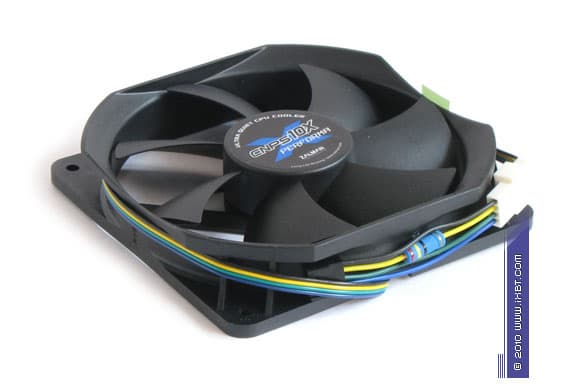 Конструктивные особенности (вентилятор). Кулер укомплектован фирменным вентилятором (модель ZP1225ALM, номинальная скорость вращения крыльчатки 2000 об/мин).