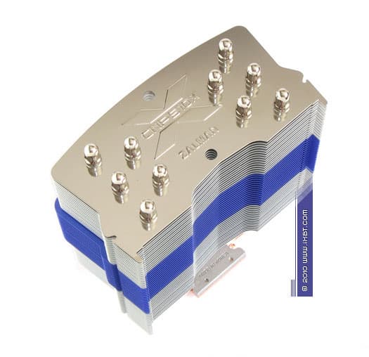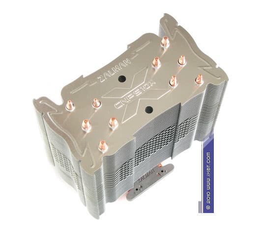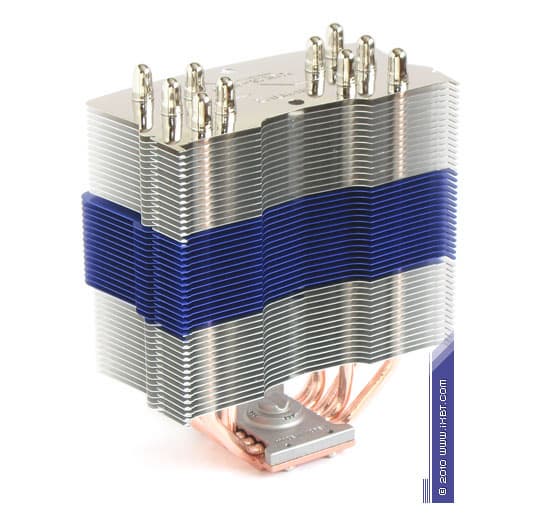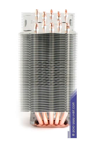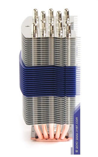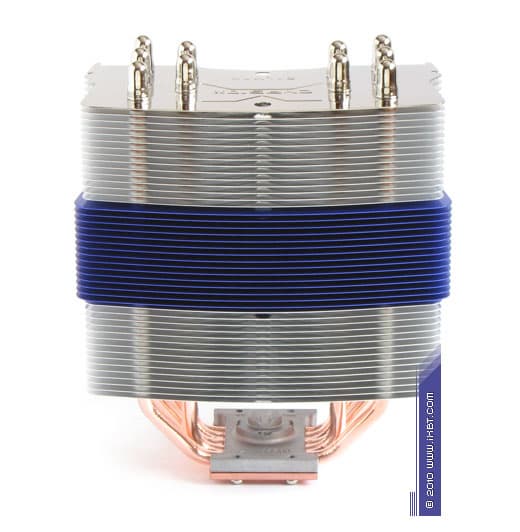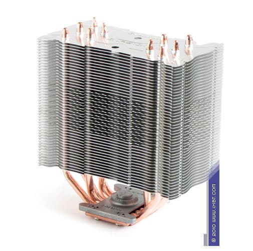 Конструктивные особенности (радиатор). «Рабочее тело» кулера образовано комбинацией медного теплосъемника 40х54х5 мм, пяти медных тепловых трубок диаметра 6 мм и секции алюминиевого оребрения (47 пластин, общая площадь поверхности теплообмена порядка 8000 см2).