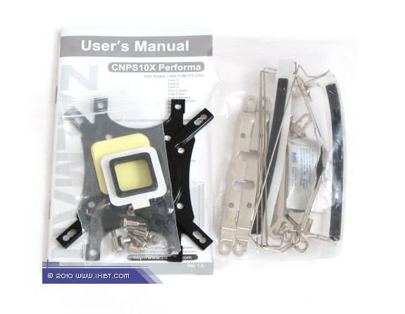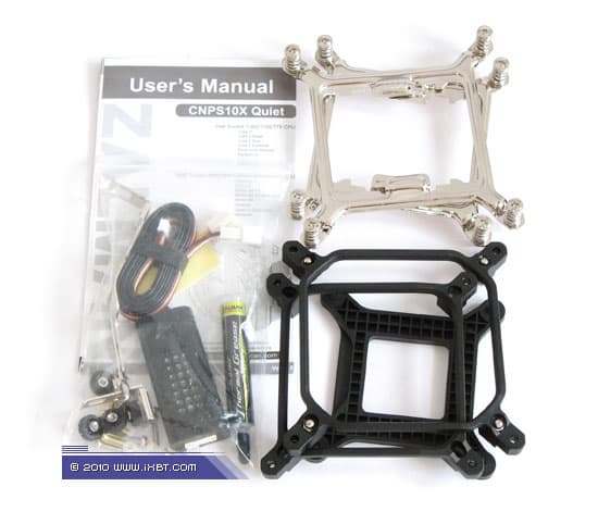 Эксплуатационная эргономика. Инсталляционный комплекс CNPS10X Performa также во многом типичен для продуктов премиум-класса, но, в отличие от CNPS10X Quiet, построен на иной технической базе. Здесь соответствующие крепежные планки (две пары, одна специализирована под сокеты Intel LGA775/1156/1366, другая — под AM2/AM3) фиксируются непосредственно на радиаторе, и далее прикручиваются к универсальной пластине-супинатору, оснащенной предварительно собранными установочными приспособлениями (гайки в пластиковых ограничителях, прокладки-уплотнители).