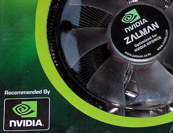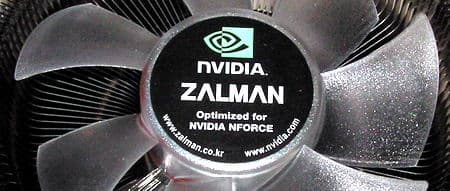 По всей видимости, именно цветовое решение (черный радиатор плюс зеленая подсветка) вкупе с PWM-управлением дало повод производителю написать на кулере надпись «Optimized for NVIDIA NFORCE» и наклеить логотип Nvidia,