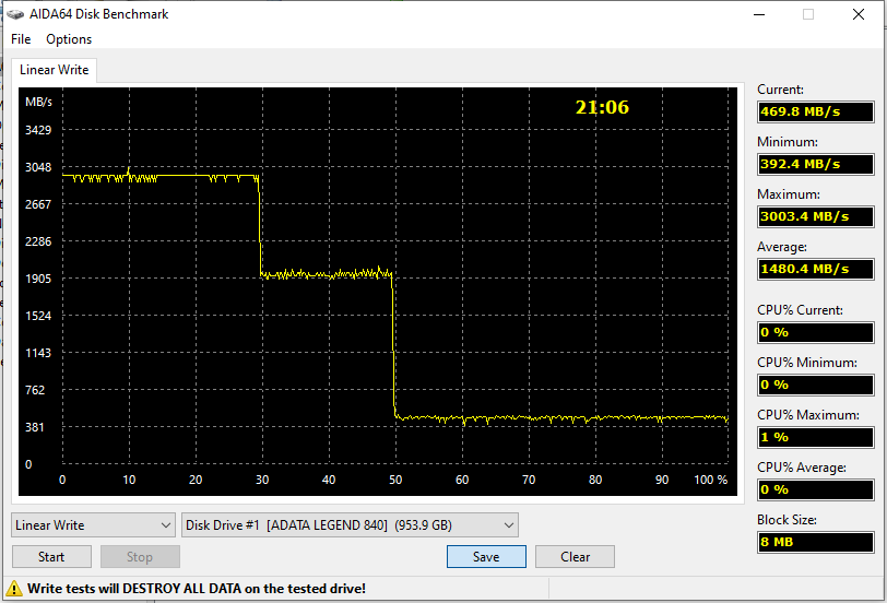 | Adata Legend 840 1 ТБ (PCIe 3.0) | 2995,2 | 3009,9 |