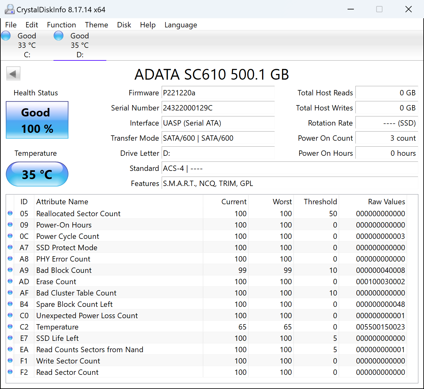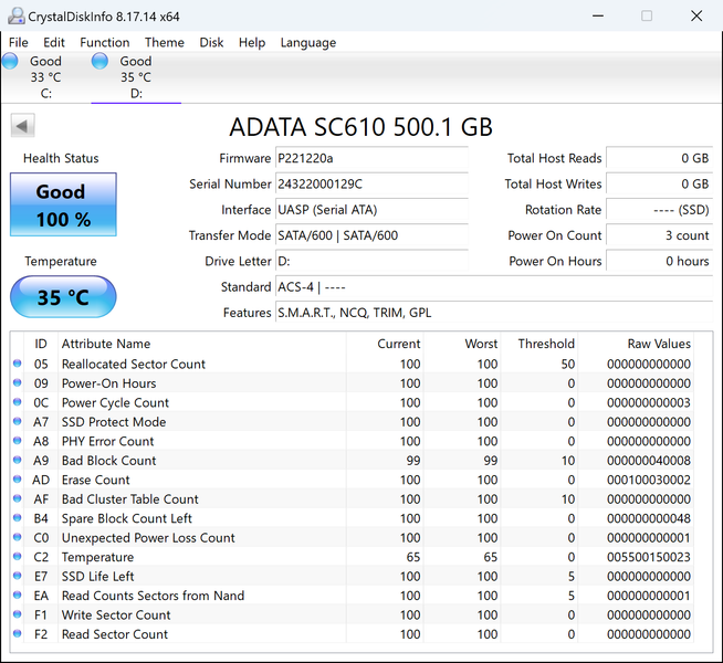 | Adata SC610 500 ГБ | 509,2 | 112,2 |